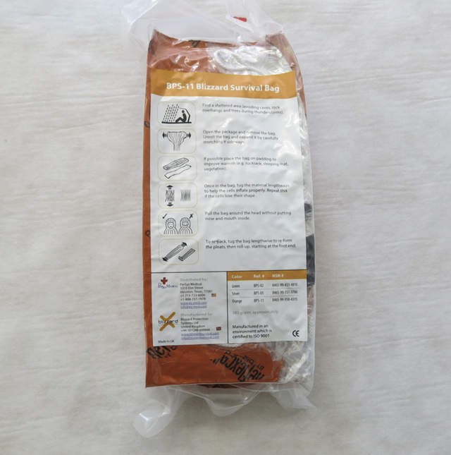 • El Blizzard Survival Bag es un saco de dormir de tamaño completo en un paquete del tamaño de un libro de bolsillo, que brinda calidez y refugio total, en cualquier lugar, en cualquier momento.
