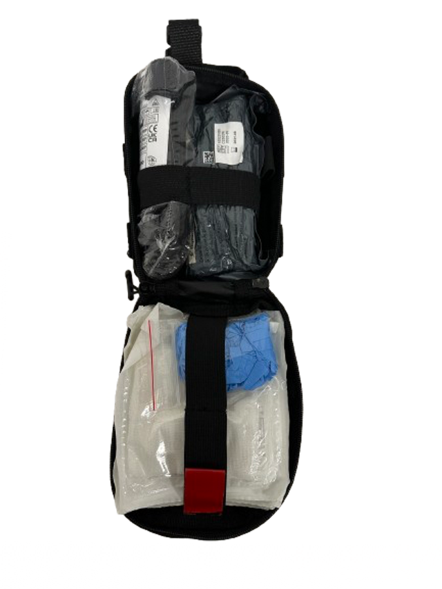 Botiquín de emergencias fabricado en cordura desmontable 2 piezas compuesto de :